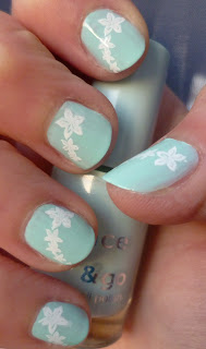 Gestampt mit Essence Stampy White und der Essence Schablone vom Stamping Set. Darüber wie immer Essie Good To Go.