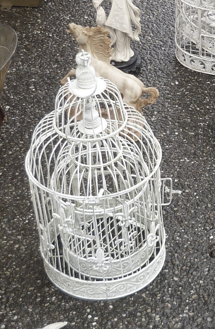 Scharf war ich ja schon lange auf so ein Teil. Dann hatte ich bei einem Flohmarktbesuch genau so einen gesehen, wie ich gerne hätte. Ich dachte aber noch, du spinnst ja, du kannst dir doch nicht einfach so einen Vogelkäfig ohne Vogel in die Wohnung stellen… Habe ihn also stehen lassen, musste aber die ganze Zeit immer wieder dran denken. 2 Wochen später war wieder Flohmarkt, und da konnte ich dann nicht anders als zuzuschlagen. Für 15 Euro fand ich es echt in Ordnung, ich hätte ihn sogar noch teurer eingeschätzt.