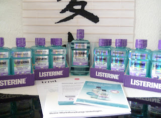 Aber die Mundspülungen sind ja nicht nur für mich. Mit dabei waren 50 kleine Schnapsgläser, und ab heute wird jeder Besuch von mir zur Begrüßung einen kleinen Shot Listerine angeboten bekommen. Hoffentlich nimmt es keiner persönlich 🙂 Aber dafür habe ich ja meine tollen Marktforschungsunterlagen, so dass ich das Ganze hochwissenschaftlich aufziehen kann.