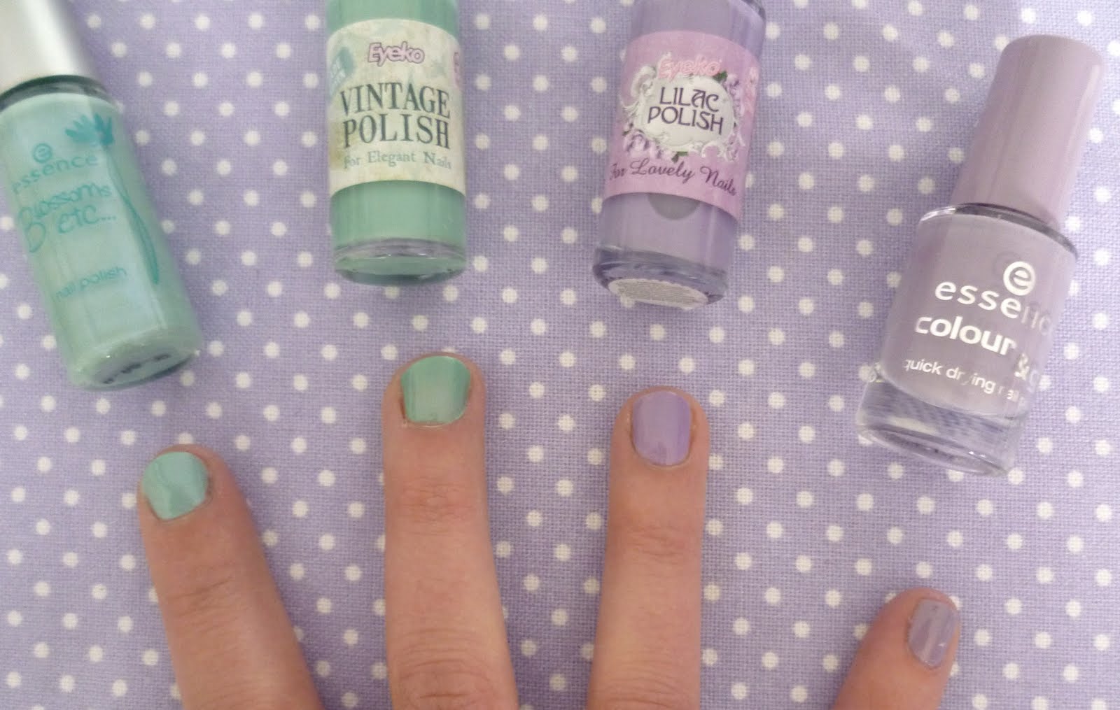 Falls euch ein Vergleich interessiert: Der Essence I Like aus der Blossoms etc… Limited Edition kommt dem Vintage Polish recht nahe und der Lilac Polish ähnelt dem Essence Colour & Go 27 No More Drama.