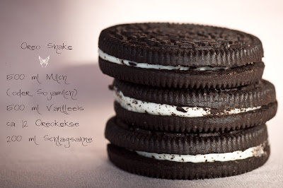 Hier ist das Rezept für den Oreo Shake, es geht ganz leicht: 500 ml Milch (ich nehme immer Sojamilch), 500 ml Vanilleeis und ca 12 Oreo Kekse im Mixer oder mit einem Stabmixer pürieren. Dann 200 ml Sahne schlagen und unterheben. Fertig 🙂