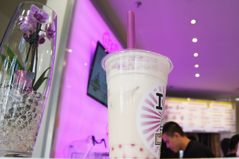 Mir fiel es ganz schön schwer, mich da zu entscheiden. Das erste Mal hatte ich Jasmintee mit Hibiskusflavour und Lycheeboba – sehr lecker, fruchtig und ein bisschen blumig. Das zweite Mal gab es Coconut & Milk mit Strawberry Boba. Ich ästhestisches Sensibelchen wollte nämlich unbedingt einen Bubble Tea, der farblich zu Nicest Things passt 😀 Es war mir ja fast ein bisschen peinlich, nach den Farben von den verschiedenen Sorten zu fragen, aber die Mitarbeiter waren supernett und haben alles perfekt nach meinen Wünschen abgestimmt. Es gab sogar extra einen lila Strohhalm.