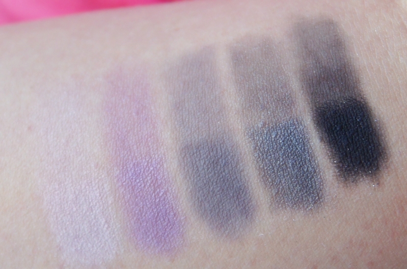Auf diesem Bild habe ich euch mal einen Streifen der UDPP aufgetragen und darüber quer einige MAC-Lidschatten geswatcht (v.l.n.r.: Seedy Pearl, Satellite Dreams, Scene, Knight Divine, Black Tied). Man sieht wirklich einen großen Unterschied, auf der Base wirken die Farben viel intensiver. Das Beste ist aber die Haltbarkeit: Ich hatte die Swatches an dem Tag nicht abgewaschen, sondern einfach einen langen Pulli drübergezogen. Am Abend waren die Lidschattenbereiche ohne die Base darunter komplett weg. Die Bereiche mit der UDPP sahern noch fast aus wie neu. Auch im realen Einsatz auf den Lidern wirkt die Base Wunder, es rutscht wirklich nichts in kleine Fältchen oder unters Auge, auch nicht nach vielen Stunden. Das Blenden klappt ebenfalls supergut.