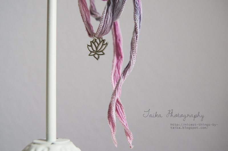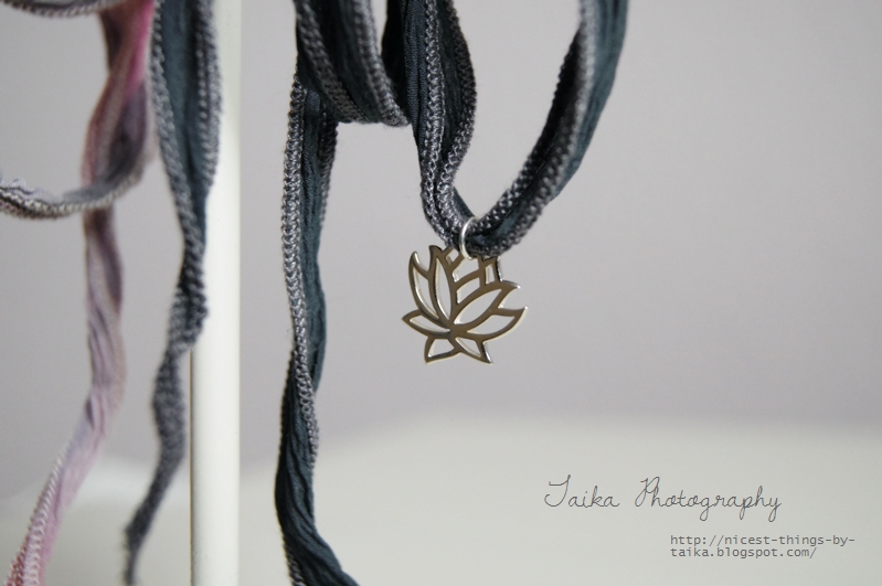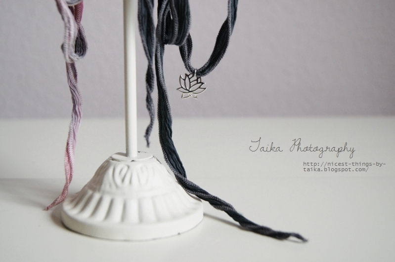 Und weil ich auch nur ein kleines schwaches Weibchen bin, habe ich mich gleich noch in die Seidenarmbänder von Rosa Cosa verliebt. Es gibt alle möglichen Farben und auf Wunsch kann das Armband sogar in der Lieblingsfarbe angefertigt werden. Dazu einer oder mehrere der vielen süßen Anhänger aus 925er Sterling Silver: Ein Flügel, ein Mond, eine Friedenstaube… ich fand die Lotusblüte am schönsten.