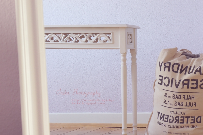 Fürs Schlafzimmer habe ich bereits eine andere Lösung gefunden, und zwar schlicht und einfach den Malm Frisiertisch von Ikea. Ja, er hat eine Glasplatte… Aber er ist größer, er hat eine Schublade für zusätzlichen Stauraum und zu modern wirkt er auch nicht. Wir haben ja sowieso eher den gemäßigten Shabby-Stil im Schlafzimmer und mit den Schmuckständern und dem Impressionenspiegel ist es genau richtig, nicht zu viel und nicht zu wenig Geschnörkel. Das zeige ich euch demnächst mal!