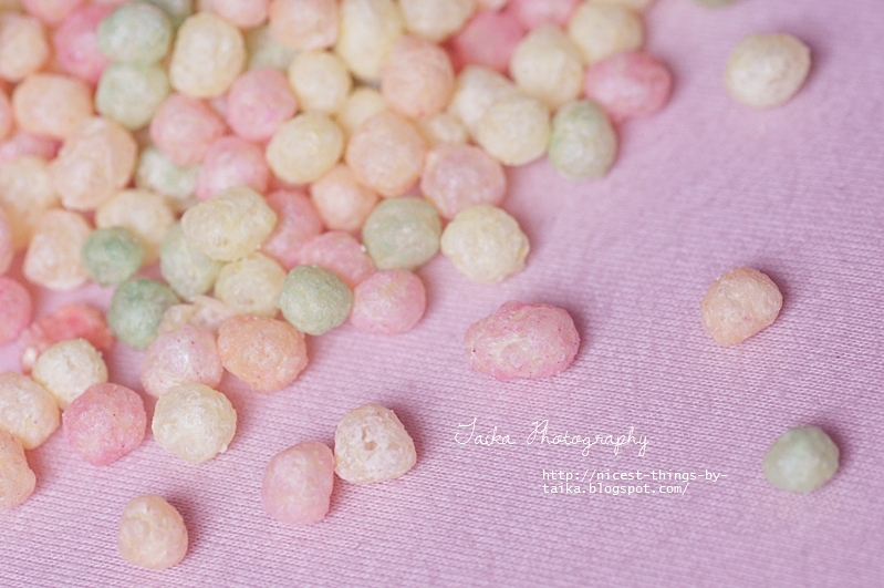 Alternativ wollte ich diesen bunten Puffreis, der nach Bubble Gum schmeckt, auf die Eclairs streuen:
