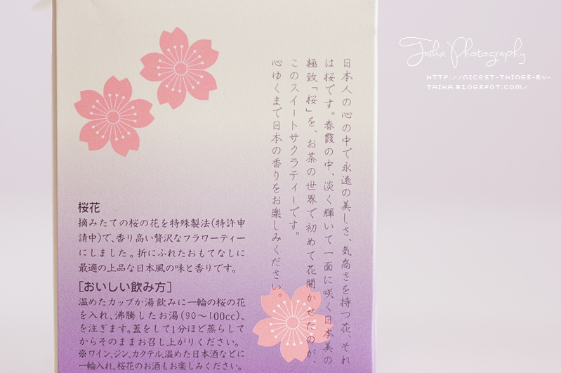 Was den Geschmack betrifft, war ich zunächst etwas überrascht. Der Tee hat eine leicht salzige Note, die sich mit dem süßen Kirschblütenaroma vermischt. Das Aroma ist ganz schwer zu beschreiben, vielleicht ein bisschen wie das Innere von Mon Cheri, aber natürlich nicht so schnapsig. Auf jeden Fall ein wenig gewöhnungsbedürftig für westliche Zungen. Man kann sagen, dass der Tee besser aussieht als er schmeckt, aber da er ja soooo schön aussieht, heißt das noch nicht, dass er unbedingt schlecht schmeckt 😉