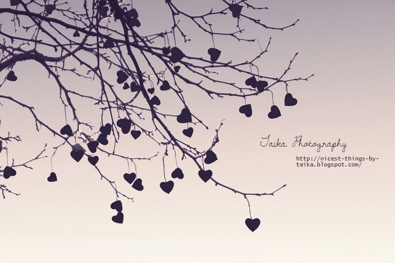 Ein kahler Baum vor schneegrauem Himmel, an dem winterfeste kleine Herzen wachsen… das könnte man jetzt auf die allerkitschigste Art und Weise auf den Valentinstag hin interpretieren, aber das war gar nicht meine Absicht. Ich habe einfach ein bisschen mit Kamera und Bildbearbeitung rumgespielt und wollte euch das Ergebnis zeigen. Verglichen mit dem Ausgangsfoto finde ich es recht schön, hier seht ihr die unbearbeitete Version: