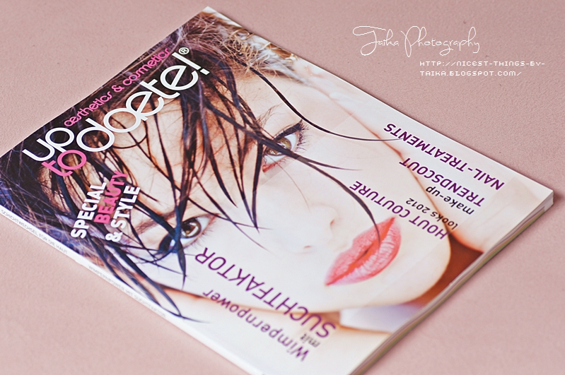 Jedes UpToDaete Magazin besteht aus zwei Teilen, dem normalen redaktionellen Teil und einem Extrathema, das von Ausgabe zu Ausgabe variiert und als Wendecover / Heft im Heft präsentiert wird. Also einfach die Zeitschrift umdrehen. In Ausgabe 2 (die ihr hier seht) behandelt das Special “Beauty and Style” zum Beispiel die neuen Trends im dekorativen Bereich, in Ausgabe 1 war es eine informative und teils kritische Beleuchtung des Themenkomplexes ästhetische und plastische Chirurgie.