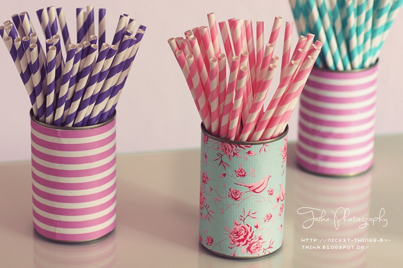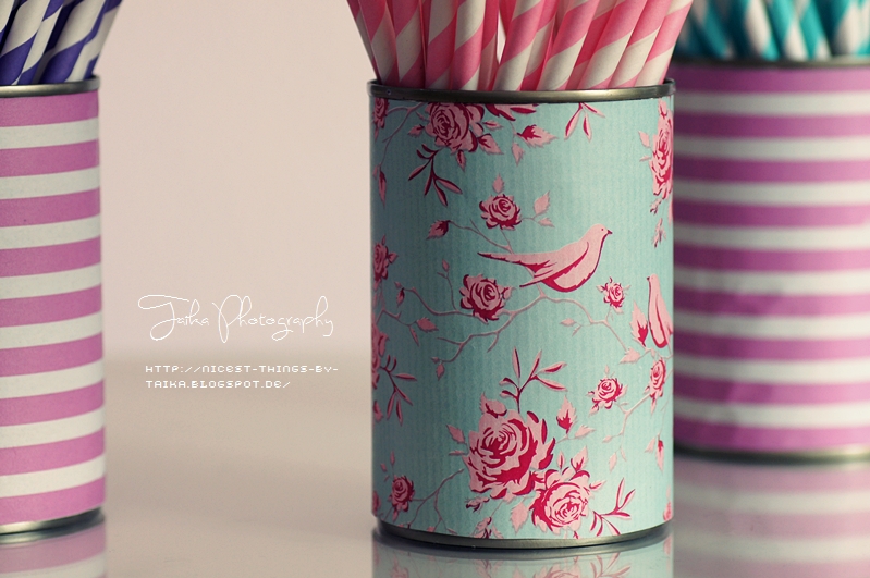 In die Dosen könnt ihr nun alles Mögliche reinpacken: Schminkpinsel, Strohhalme, Stifte natürlich…