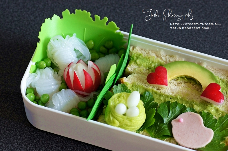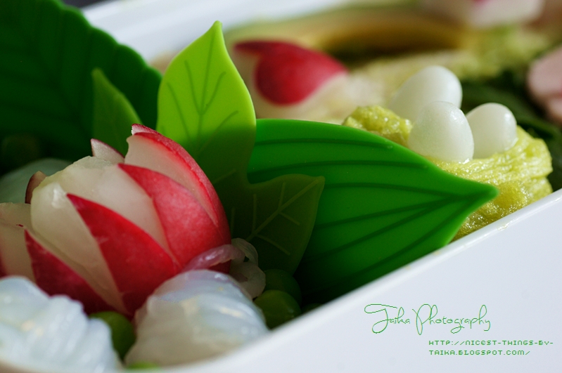 Heute hatte ich also frei und konnte den ganzen Tag nach Herzenslust das Bento planen, die Zutaten einkaufen, alles arrangieren und zum Schluss fotografieren. So liebe ich das! Mein Schatz kam heim, sah das Schlachtfeld in der Küche und meinte: “Hast wieder den ganzen Tag gespielt, gell?” Ich so: “Jaaaaa” (strahl).