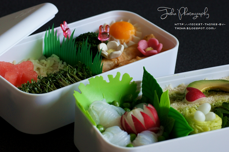 Dazu kommt nämlich noch, dass ich neues Bentozubehör habe!!! Bei Bentoshop.de* gibt es ja alles, was man sich nur wünschen kann an Boxen, Schälchen, Picks, Ausstechern, Förmchen… Klein-Vera hat da gaaaanz große Augen bekommen und wenig später dem DHL-Mann ein mindestens genau so großes Paket aus den Händen gerissen. Seitdem ordne ich nun fast täglich mein Regalfach mit den Bentosachen um… doch ich schweife ab. Erst mal zeige ich euch, was ich heute gemacht habe: Ein herzhaftes, zweistöckiges Frühlingsbento!