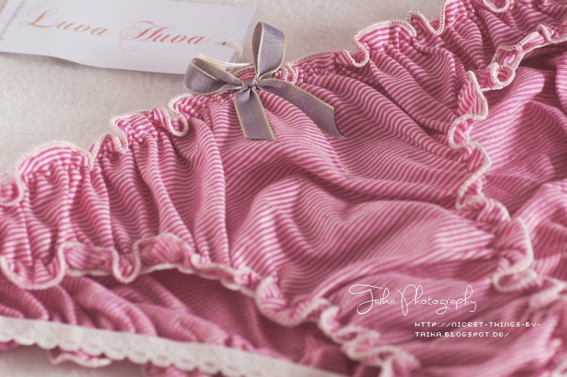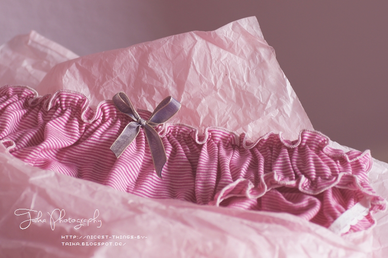 Die frühlingsfrischen weiß-rosa Streifen, der süße Schnitt mit den Rüschen und die tolle – ihr wisst, was jetzt kommt – Verpackung haben meine Laune gleich wieder ein bisschen gebessert.