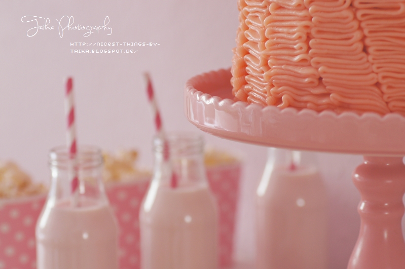 Okay, mein Sweet Table ist ein Baby gegen das, was man sonst so sieht. Weder habe ich French Windows mit Blick über den Park im Hintergrund noch habe ich selbst bedruckte Schildchen, die jedem Gast erklären was die Erdbeermilch ist und was die Cupcakes sind. Meine Torte ist nur einstöckig und ich habe nur einen Tortenständer – den ich dafür aber über alles liebe. Oh, und was ich auch nicht habe, sind Gäste, hihi… Das war nun alles meine Sonntagsspielerei und außer meinem Freund und mir ist niemand hier, um das alles aufzuessen!