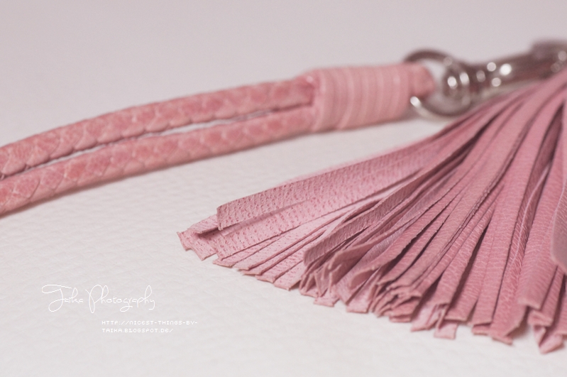 Dieses geflochtene Leder mag ich einfach unheimlich gerne, die Farbe ist perfekt und praktisch ist das lange Band auch für Schussel wie mich.
