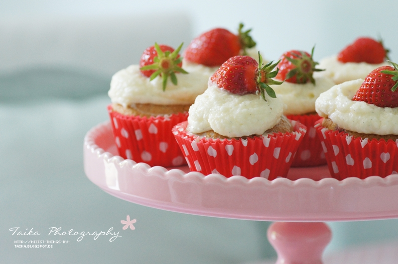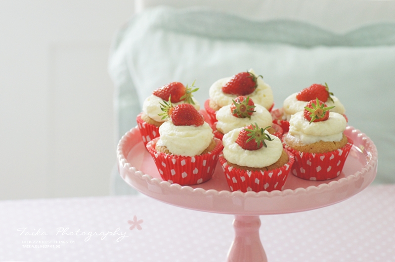 Wenn ihr noch ein Ei dazugeben wollt, erst das Eiweiß schlagen, dann den Puderzucker dazu geben und dann erst die restlichen Zutaten. Nicht so wie ich, die ich hocherfreut über das unerwartete Gelingen des Eischnees den am Ende noch zu der fertigen Mischung gab. Das gibt Bröckchen und das ganze Frosting weicht auf – großer Fehler. Sowieso habe ich eine ganz schlechte Beziehung zu Frostings und Eischnee. Sollte ich EINMAL in meinem Leben ein glattes, festes, gut zu verarbeitendes Frosting kreieren, dann… ja, was dann? Mir fällt gerade nichts ein, aber macht auch nichts, dazu wird es ja eh nicht kommen. Aber auch wenn das Frosting so aussieht, als wäre es aus 3 Metern Höhe auf die Cupcakes geplumpst – geschmeckt hat es trotzdem.