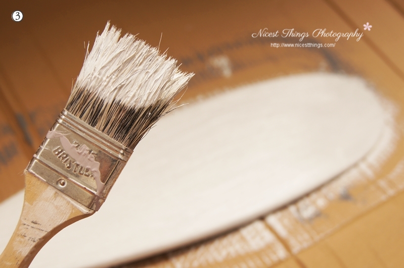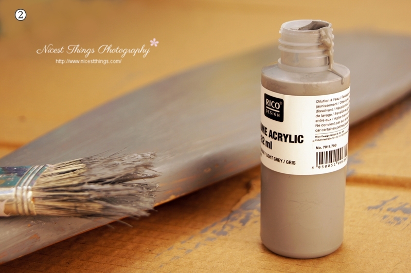3. Auf die getrocknete Untergrundfarbe eine zweite Farbschicht, diesmal mit dem helleren Ton, auftragen. Bei mir war es Weiß. Und ihr ahnt es schon, bitte schön schlampig, damit das Grau noch hier und da durchkommt. Ebenfalls sehr gut trocknen lassen. Aber wie gesagt, mit den Acrylfarben von Idee hab ich das alles an einem Tag geschafft.