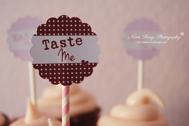 Die gab es gerade beim Woolworth für 99 Cent. Die Schildchen kann man übrigens ganz leicht mit einem kleinen Klumpen Fondant dahinter zum Stehen bringen. Knete hatte ich leider keine, das wäre natürlich irgendwie geschickter gewesen. Aber merkt ihr was, Fondant und ich, wir sind mittlerweile SO miteinander (jetzt stellt euch zwei ineinander verschränkte kleine Finger vor oder wie man da halt eben macht).