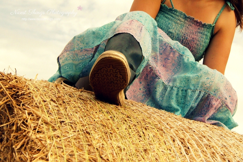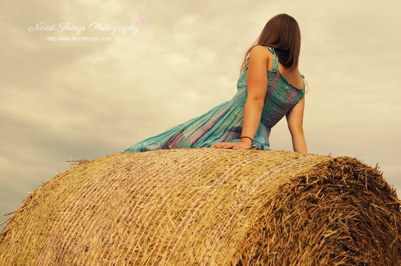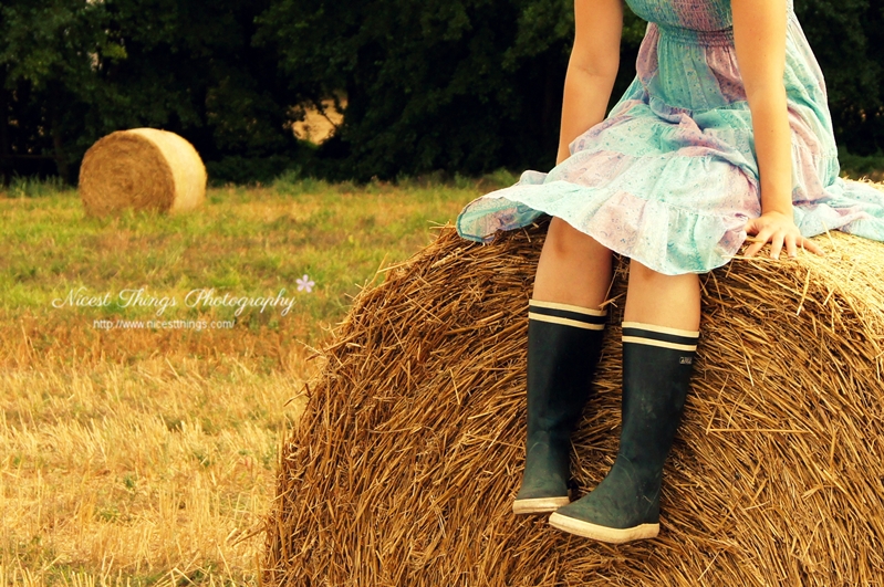Aber jetzt auf einmal hat der Bauer das Feld direkt hinter unserem Haus abgeerntet. Und mir ein paar wunderschöne Heuballen dahin gesetzt. Ha! Ist zwar ein bisschen spät, im September noch…? Aber mir solls ja recht sein. In aller Ruhe konnte ich mir ein Kleid aussuchen, zehnmal kontrollieren ob sich die Speicherkarte in der Kamera befindet und auf die Golden Hour warten. Einen Fotografen hatte ich auch.