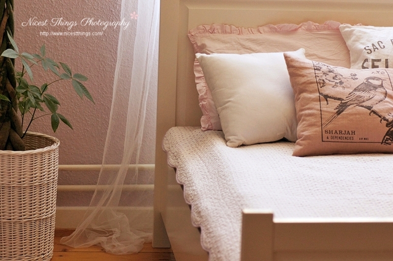 Zuallererst mal brauchten wir die passende Gardine. Dass es etwas ganz Leichtes und Lichtdurchlässiges sein sollte, war klar. Praktisch etwas, womit man aus dem Schlafzimmer eine Foto-Softbox machen konnte. Am liebsten eine klassische, weiße Voilegardine aus Baumwolle. Bitte nicht aus glänzendem Plastikstoff, es sollte ganz natürlich aussehen.
