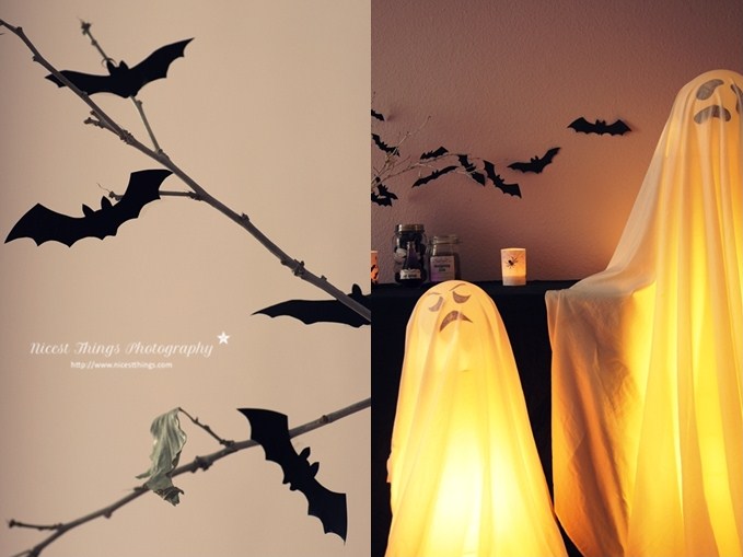 Dass heute nicht Halloween ist weiß ich natürlich, aber wir Blogger müssen immer ein bisschen im Voraus posten. Wenn ich euch am Abend des 1. November damit komme, habt ihr ja nichts mehr davon. Daher habe ich die Halloween Deko jetzt schon mal bei uns aufgebaut. Freu ich mich eben ein bisschen länger dran, auch nicht schlecht. Und das sind die einzelnen Miniprojekte: