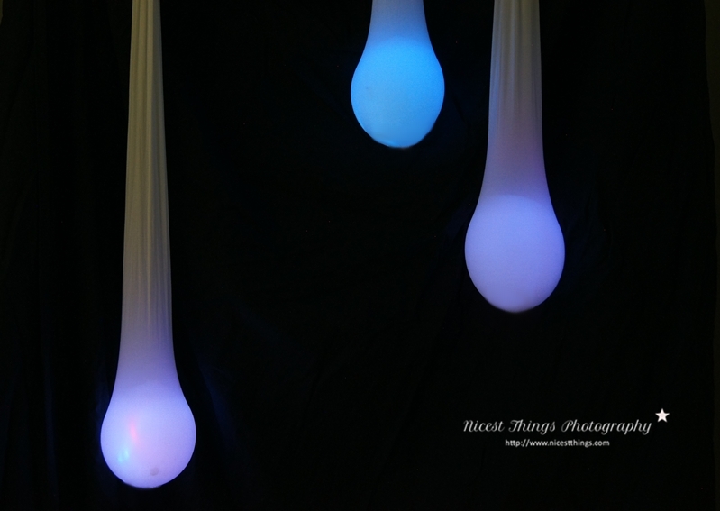 4. Die Leuchtballons schließlich in die Strumpfhose packen und aufhängen. Leider leuchten die Knicklichter nur so ca. 6 Stunden, aber für einen Abend reicht das ja.