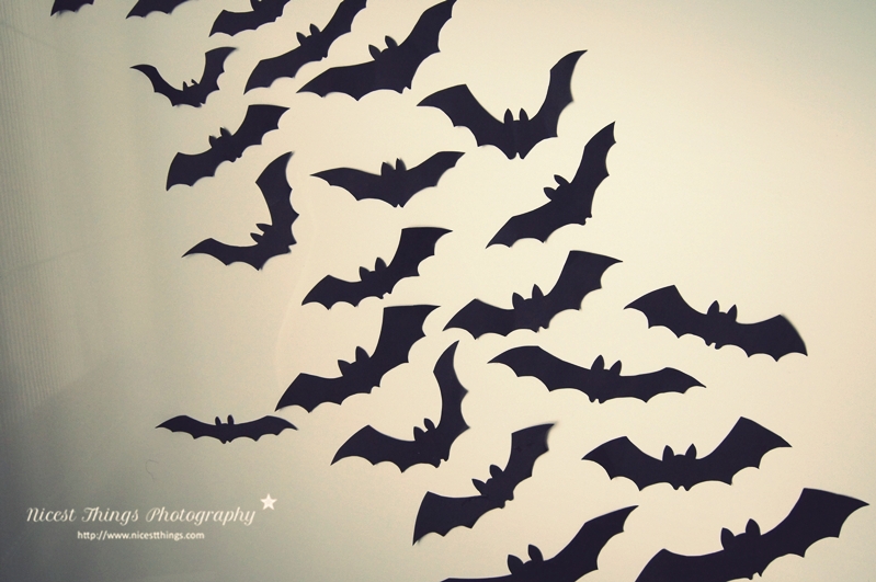 Wenn ihr die Vase mit den DIY Fledermaus Zweigen auf eine Kommode o.ä. stellt, könnt ihr noch ein, zwei Fledermäuse direkt auf die Wand kleben, um so eine Kontinuität herzustellen
