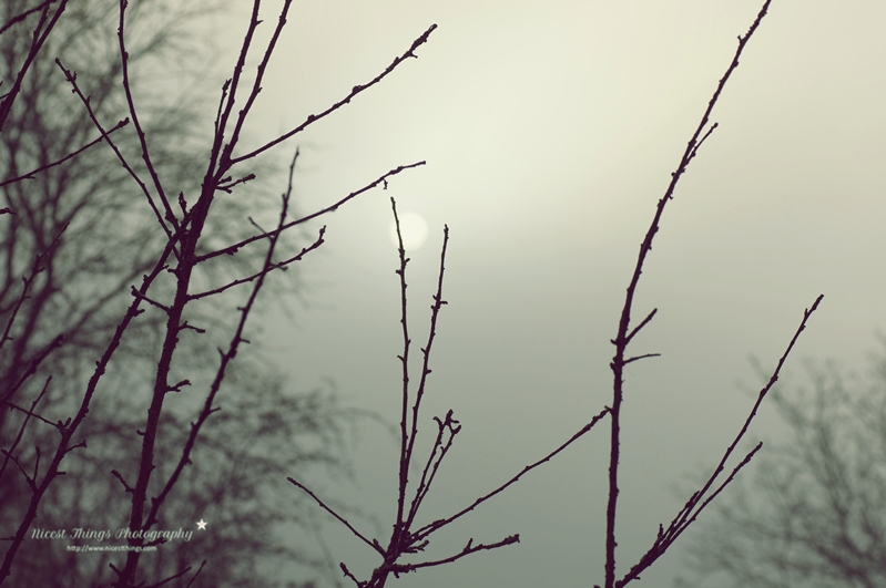 Parklaternen. Ich liebe sie. Die Sonne ist nur ein kleiner fahler Punkt. Ein weißer Kreis, der erstickt vom Nebel in den schwarzen Ästen hängt.