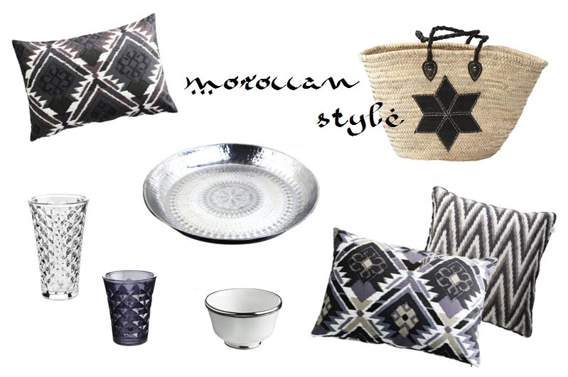 Zum Moroccan Style habe ich mal diese Mindmap gebastelt. Wie die Sachen “in echt” wirken, davon bekommt ihr auf den Fotos ja schon einen kleinen Eindruck… Wichtig finde ich hier die silbernen Akzente, um ein bisschen orientalischen Luxus auszustrahlen. Dazu natürliche Materialien wie Korb oder Bast und ein paar Statement-Muster… und den weißen Nougat im Futterschälchen nicht vergessen 😉