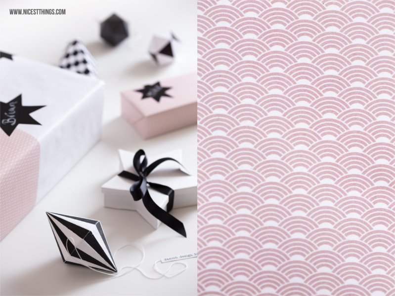Weihnachtsgeschenke verpacken, schlicht, in Schwarz, Weiß und Rosa