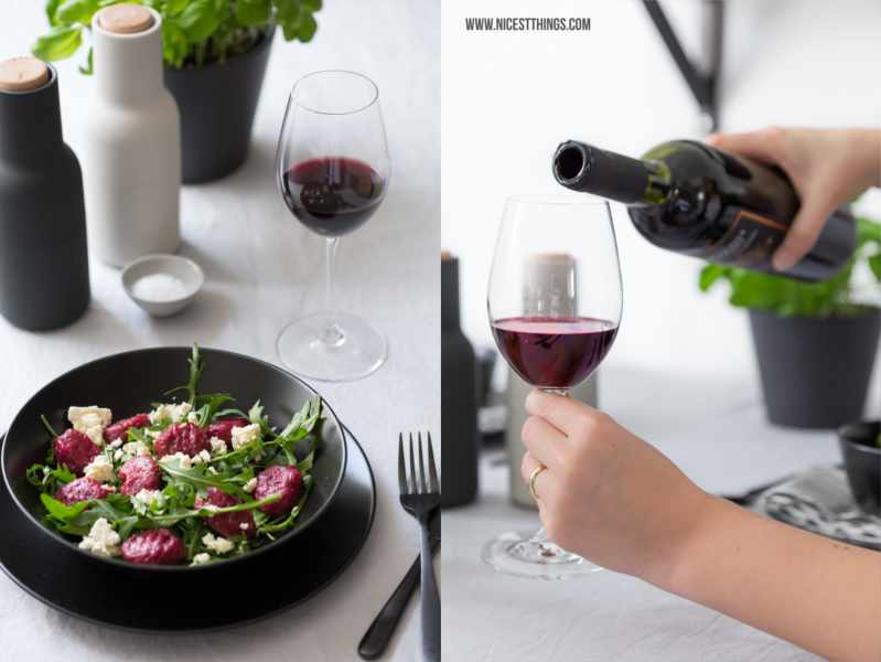 Rote Bete Gnocchi AN Ziegenkäse auf einem RucolaBETT (wir sind hier ja bei feinen Leuten, nech)