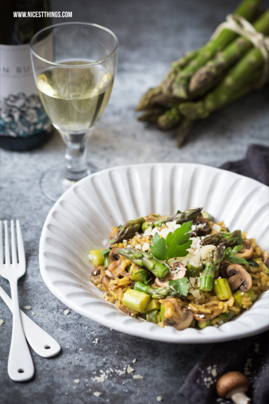 Spargel Risotto Rezept mit grünem Spargel und Steinpilzen für 2 Personen: