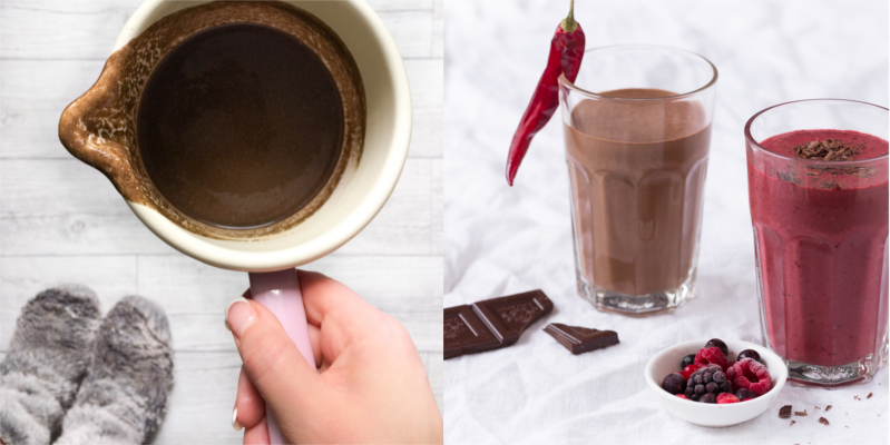 Das Styling von manchen Drinks war durchaus eine Herausforderung. Ich stellte mich hin, mixte fröhlich alle leckeren Zutaten zusammen und bekam… nun ja, das. Das linke Bild vom Schoko-Chili-Shake hat es trotz meiner schicken Fellhausschuhe ganz knapp nicht ins Buch geschafft.