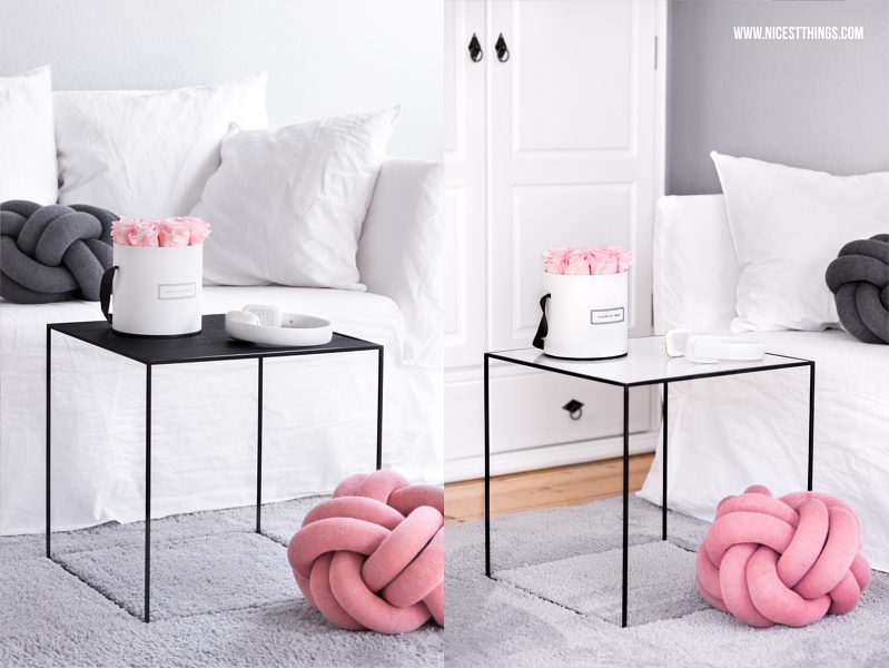 Deine Wohnung ist so ein Traum! Die Knotenkissen finde ich auch sensationell. Auf jeden Fall die helle Seit des Tisches!
